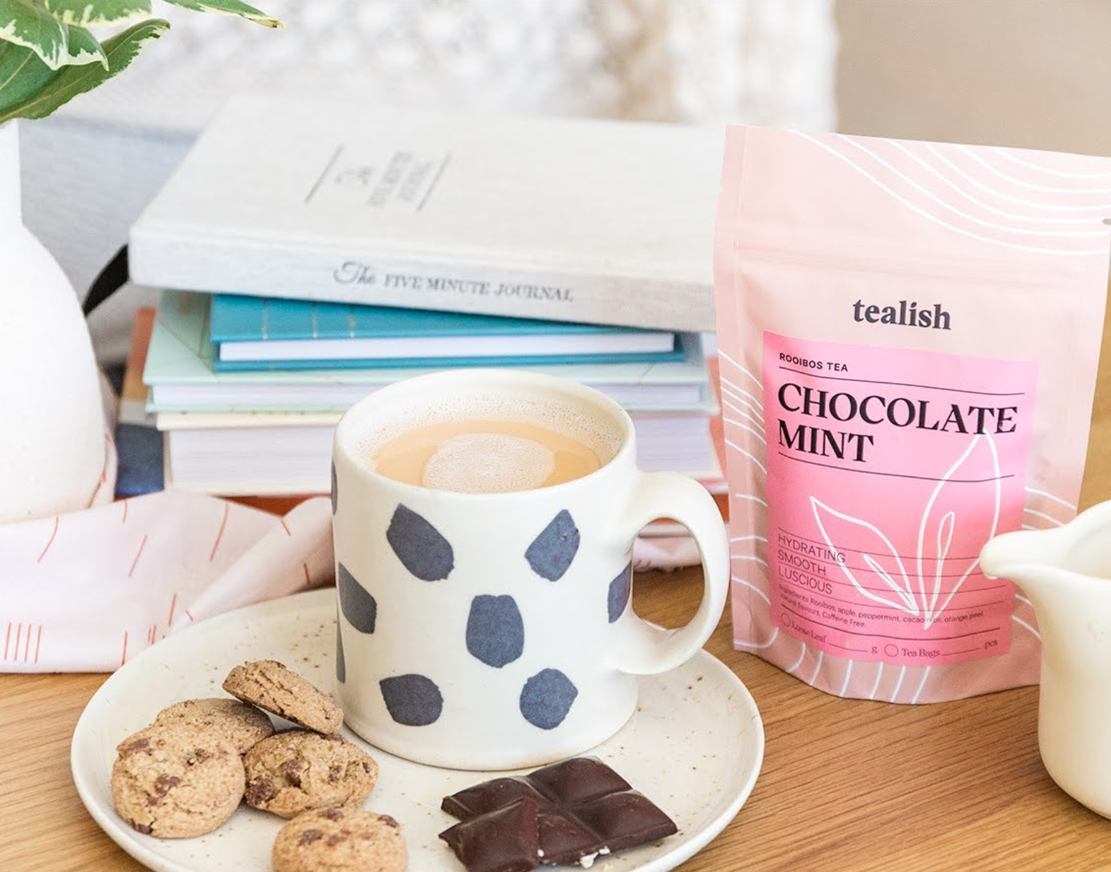 Cocoa and red rooibos provide a full bodied richness finishing with fresh peppermint.