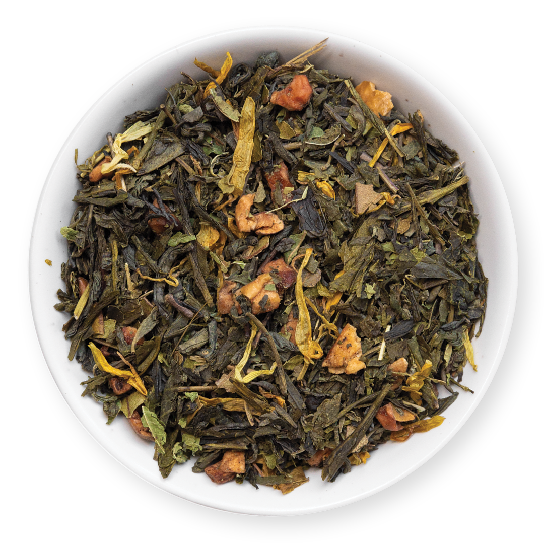 Green tea, lemon verbena, ginger, lemon myrtle, apple, calendula, natural flavours.